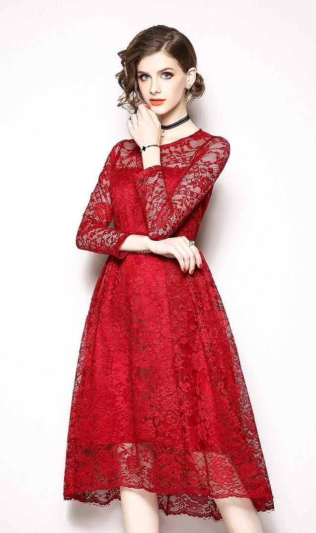 (aixi_X0039) レース パーティードレス ミモレ丈 袖あり 結婚式 ドレス お呼ばれ ワンピース 30代 20代 40代 披露宴パーティドレス 二次会 フォーマル | 2019新作ドレス★onlythebestオンリーザベスト