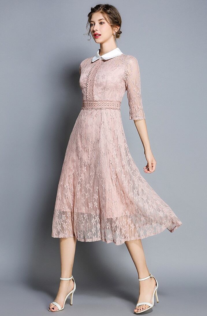 (aixi_X0059) 襟付きワンピース 20代 結婚式 ドレス お呼ばれ ワンピース 30代 パーティードレス 袖あり 結婚式 二次会 オフィスカジュアル レース | 2019新作ドレス★onlythebestオンリーザベスト