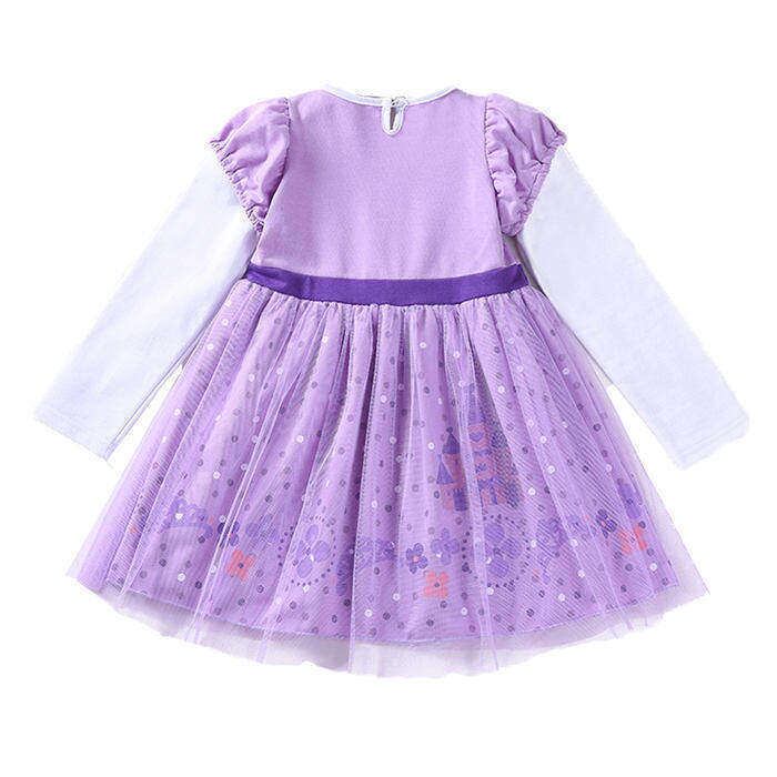 子供向けのハロウィンコスチューム風のドレス 2018年秋トレンド 子供用のワンピース 100%コットン 白雪姫 パープル