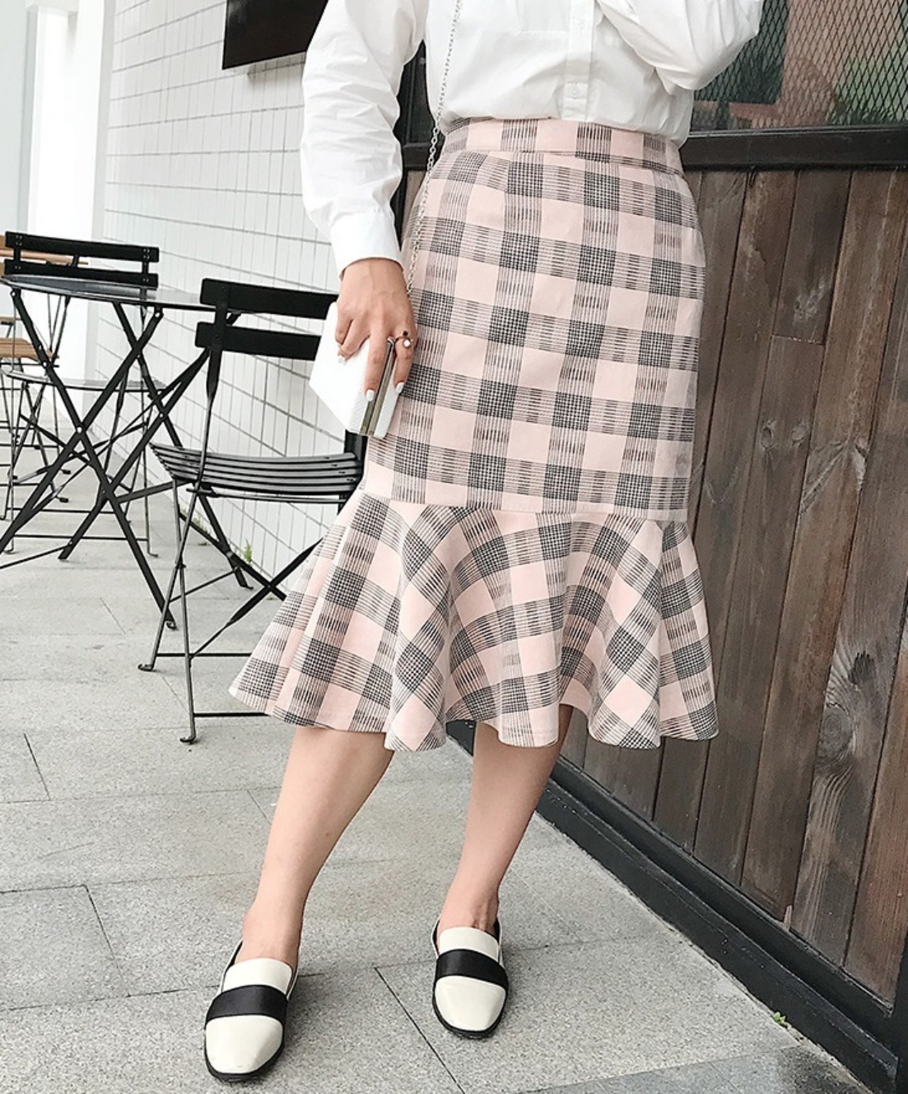 (scfs-X0009) チェックスカート ピンク タイトスカート チェック 膝下スカート レディース ボトムス ゆったりサイズ 大きいサイズ 女子会 食事会 | 2019新作ドレス★onlythebestオンリーザベスト