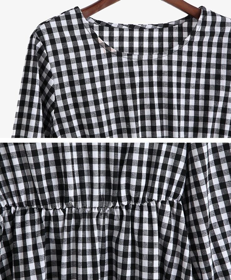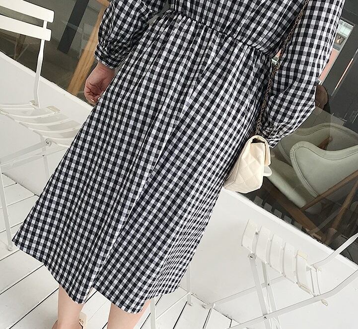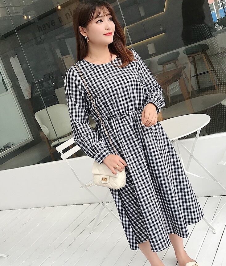 (scfs-X0016) ギンガムチェック ワンピース 膝下ワンピース 長袖ワンピース ゆったりサイズ 体型カバー 女子会 お呼ばれ 食事会 デート | 2019新作ドレス★onlythebestオンリーザベスト