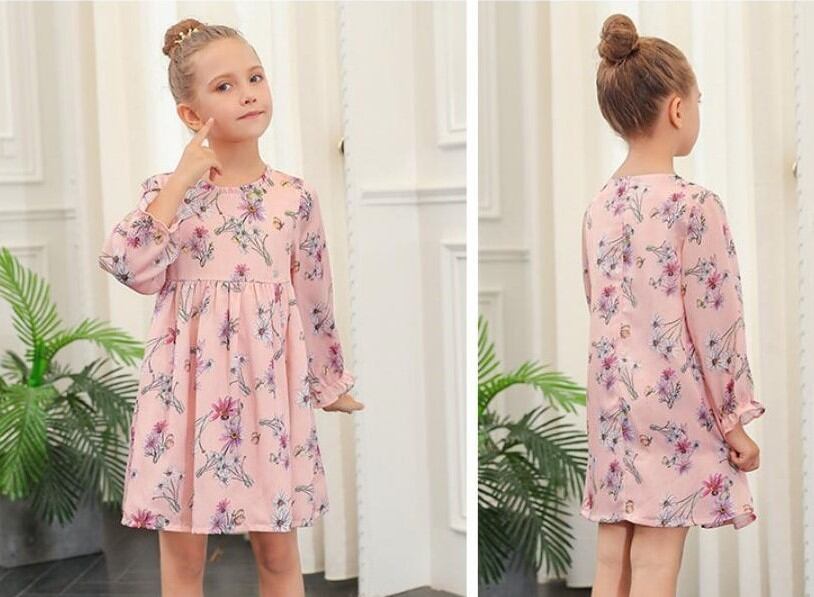 (candydoll-X0006) ワンピース ドレス ラウンド襟 花柄 ピンク キッズワンピース 子供服 子供通販 2018年秋トレンド 長袖 | 2019新作ドレス★onlythebestオンリーザベスト