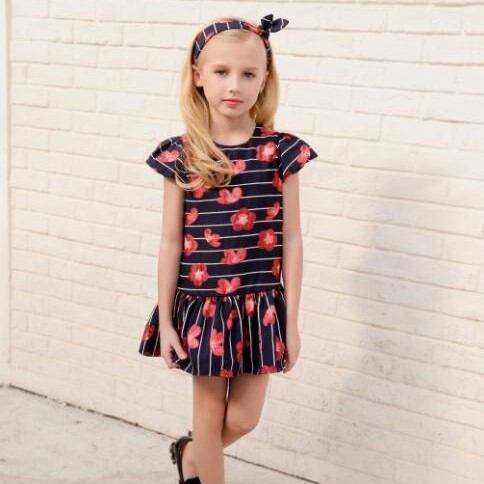 (candydoll-X0025) キュート 花柄 ブラック ボーダー キッズファッション キッズワンピース 2018年秋トレンド ワンピース | 2019新作ドレス★onlythebestオンリーザベスト
