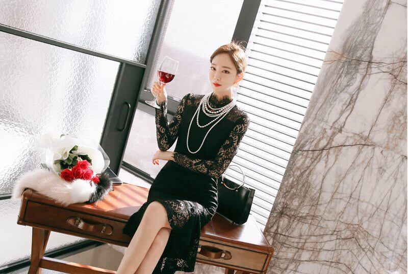 クラシカルな模様でとても華やかな印象を与えるレースドレス。