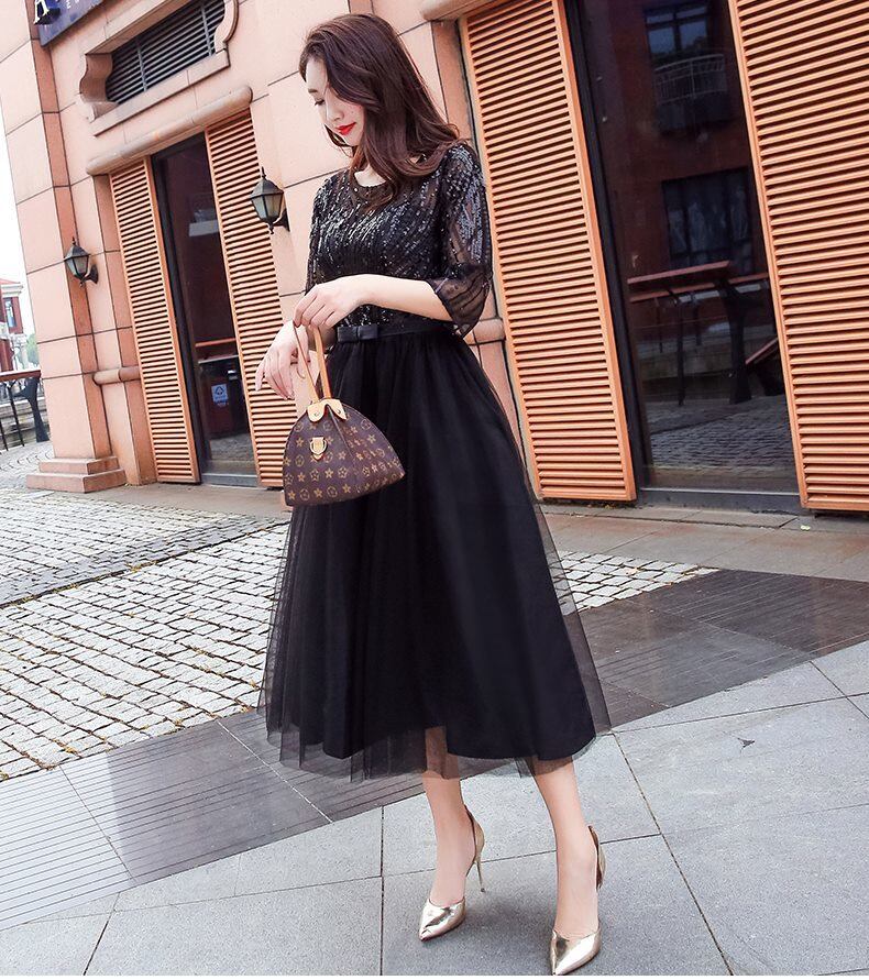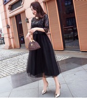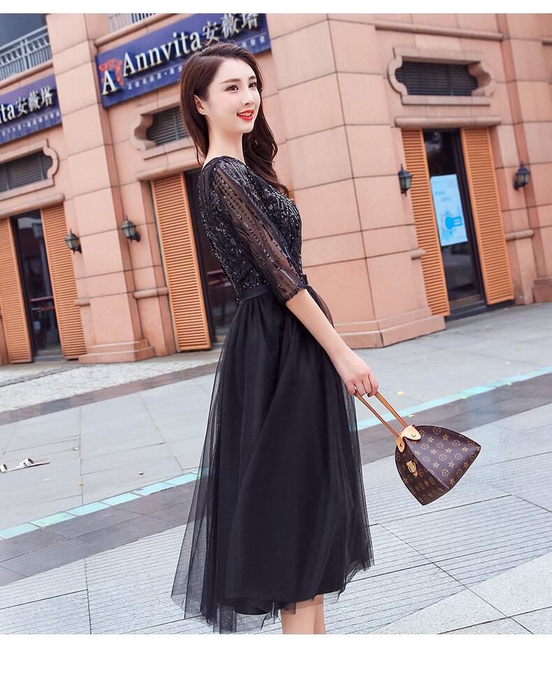レース 刺繍 ビーズ刺繍 チュール 膝下 七分丈 リボン ワンピース パーティードレス 結婚式 二次会 披露宴 女子会 パーティー 演奏会 コンサート 発表会 卒業式 謝恩会 お呼ばれ キャバ 20代 30代 体型カバー 大きいサイズ 2L 3L 4L 5L 6L