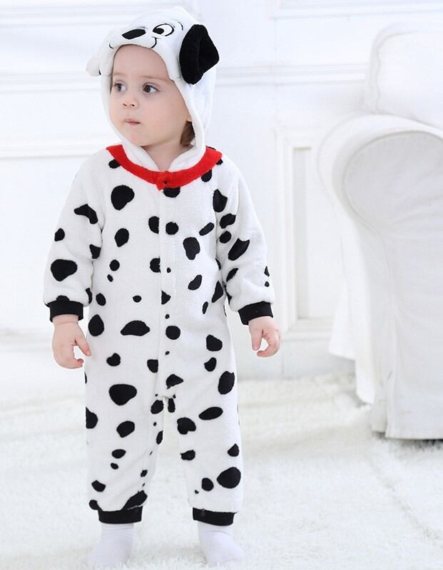 ベビー キッズ ベビー服 ファッション用品 ハロウィン かわいい パーティー お呼ばれ 発表会 アニバーサリー 記念写真 着ぐるみ コスチューム コスプレ 写真 撮影 3か月 6か月1才 2才 着やすい 脱ぎやすい 101匹わんちゃん ダルメシアン 犬 わんちゃん しっぽ 耳 フード 70cm 80cm 90cm 100cm 110cm