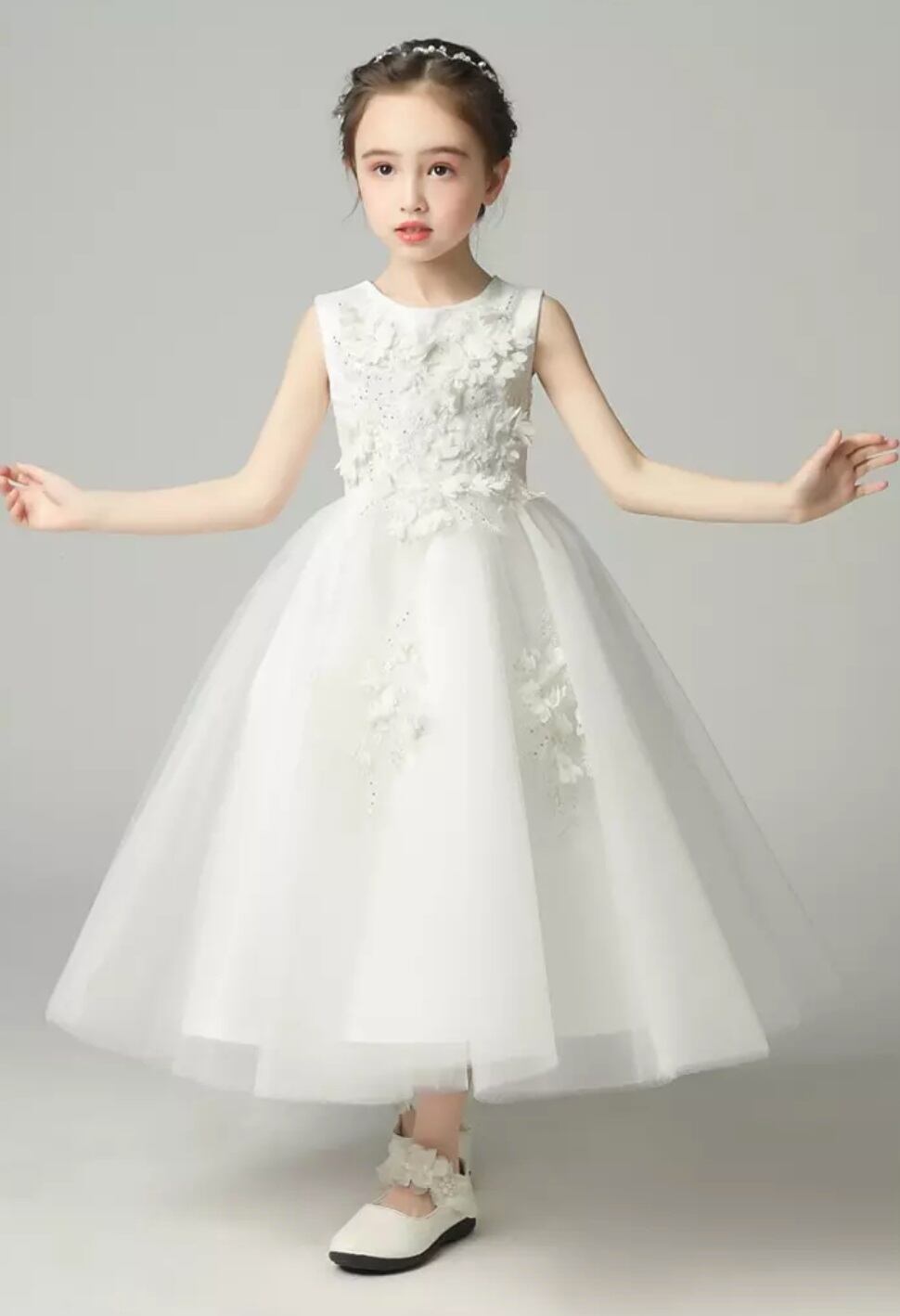(geyaner_X0005) 子供 ドレス ロング丈ドレス ホワイト ノースリーブ ドレス 子供 結婚式 キッズ ドレス 子供 ドレス 結婚式 ピアノ 発表会 ドレス 子供 | 2019新作ドレス★onlythebestオンリーザベスト