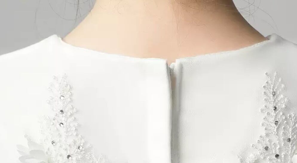 結婚式や発表会に、王道ホワイト膝丈ドレスです。