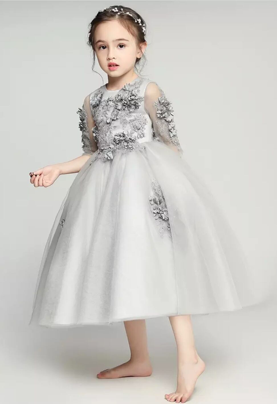 (geyaner_X0010) 子供 ドレス ロング丈ドレス シルバー 花 ビジュー ピアノ 発表会 ドレス 子供 160 130 140 150 ドレス 子供 結婚式 キッズ ドレス | 2019新作ドレス★onlythebestオンリーザベスト