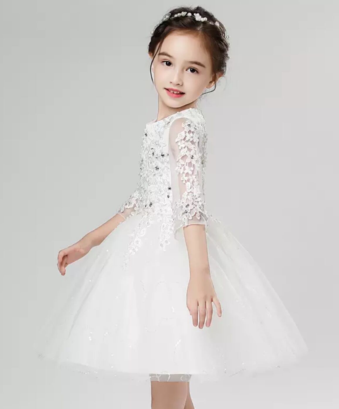 (geyaner_X0012) 花柄レース 膝丈ドレス ホワイト ピアノ 発表会 ドレス 子供 130 140 150 160 ドレス 子供 結婚式 キッズ ドレス 子供 ピアノ発表会 | 2019新作ドレス★onlythebestオンリーザベスト