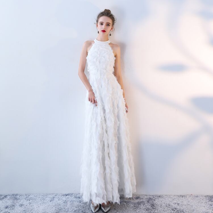 ウエディングドレス フェザー ホルターネック スタイリッシュ 上品 エレガント パーティー XS S M L XL XXL オーダーメイド可能