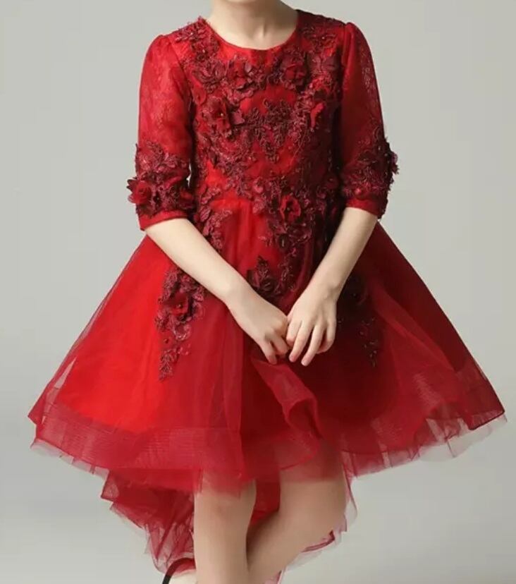 (geyaner_X0028) フィッシュテール風ドレス ワインレッド 五分丈袖ドレス ピアノ 発表会 ドレス 子供 130 140 150 160 ドレス 子供 結婚式 キッズ ドレス | 2019新作ドレス★onlythebestオンリーザベスト