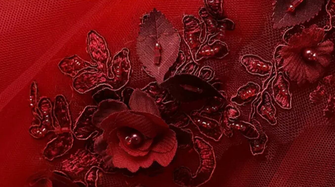 結婚式や発表会に、真っ赤な五分丈袖のレースドレスです。