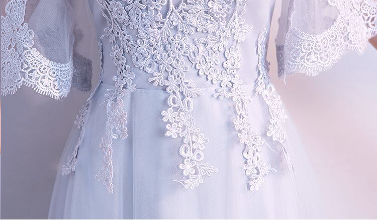 繊細なチュールにアンティーク調の刺繍を施した華やかなパーティードレス。