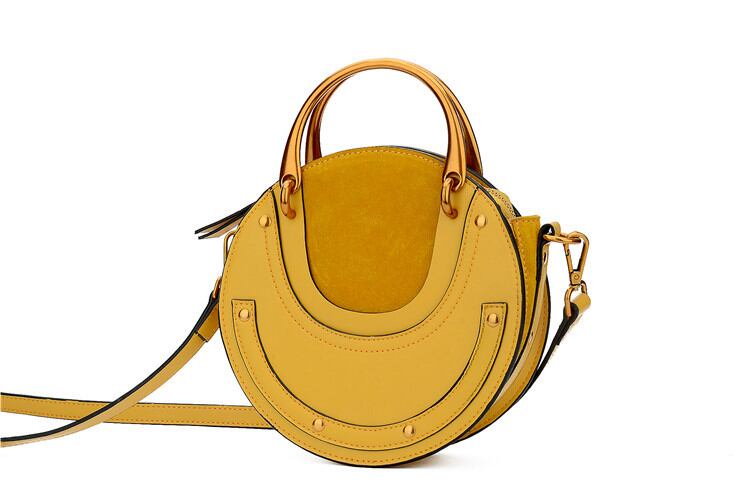 スエードのハンドルタイプのサークルバッグ