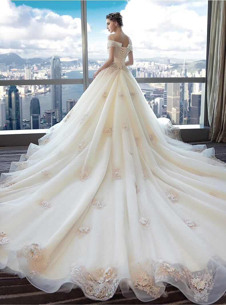 (twdgdrsbig-x0001) オフショルダー Aライン 刺繍 ロングトレーン ウェディングドレス 白 二次会 花嫁 ウェディングドレス 大きいサイズ ウェディングドレス | 2019新作ドレス★onlythebestオンリーザベスト