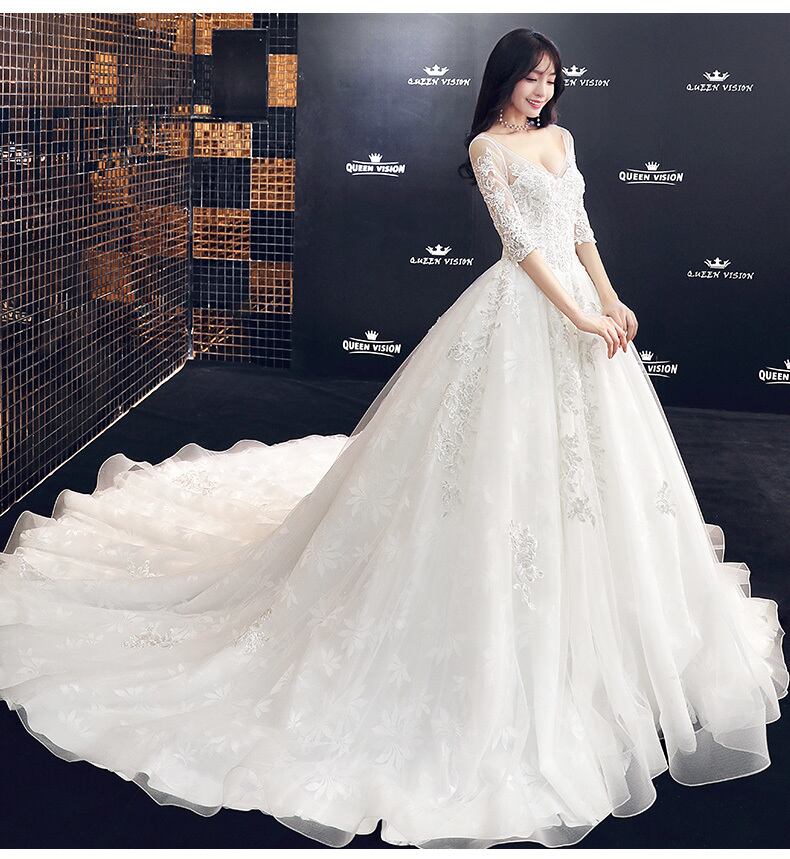 (twdgdrsbig-x0019) シースルーレース 刺繍 袖あり ロングトレーン Aライン ウェディングドレス 白 二次会 花嫁 ウェディングドレス 大きいサイズ 海外挙式 | 2019新作ドレス★onlythebestオンリーザベスト