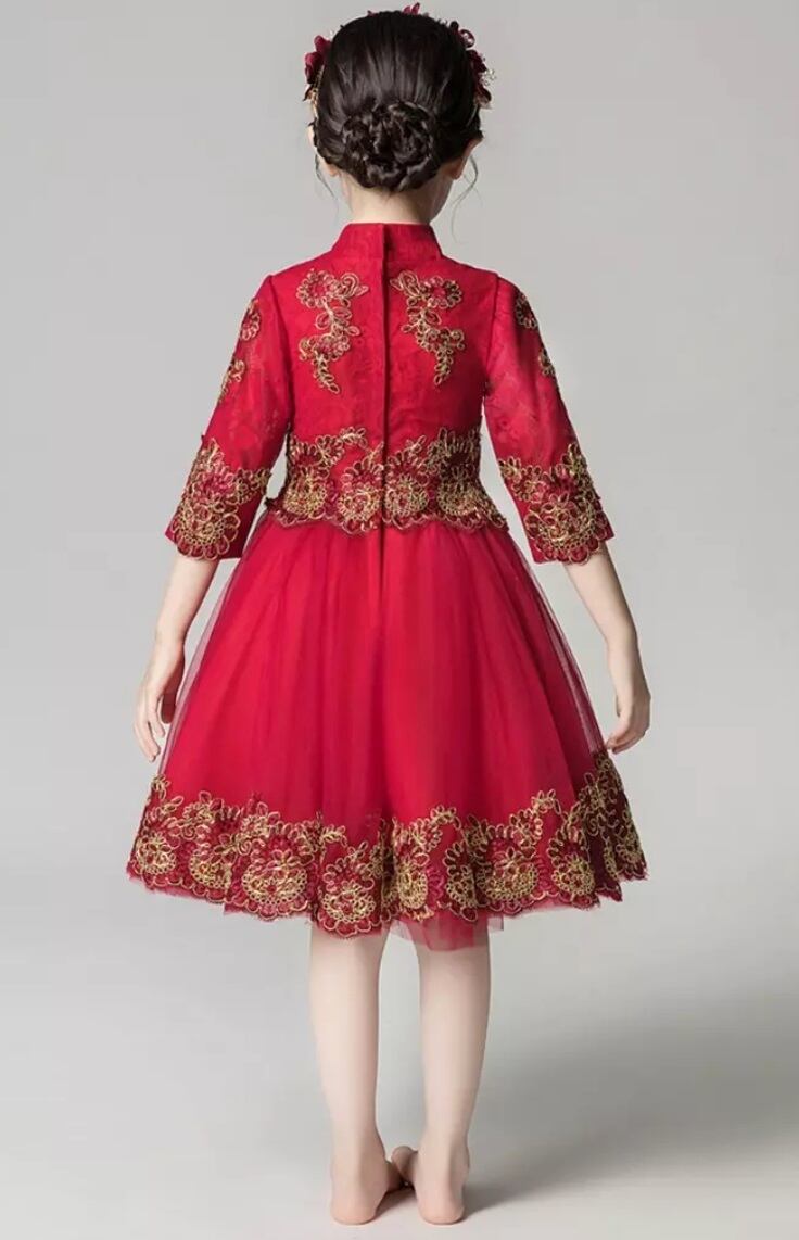 (geyaner_X0032) アジアンテイスト レッド 刺繍 ピアノ 発表会 ドレス 子供 130 140 150 160 ドレス 子供 結婚式 キッズ ドレス 子供 ピアノ発表会ドレス | 2019新作ドレス★onlythebestオンリーザベスト