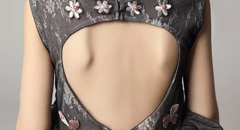 大き開いたバックと、シックな色合いは大人服顔負けのデザイン。