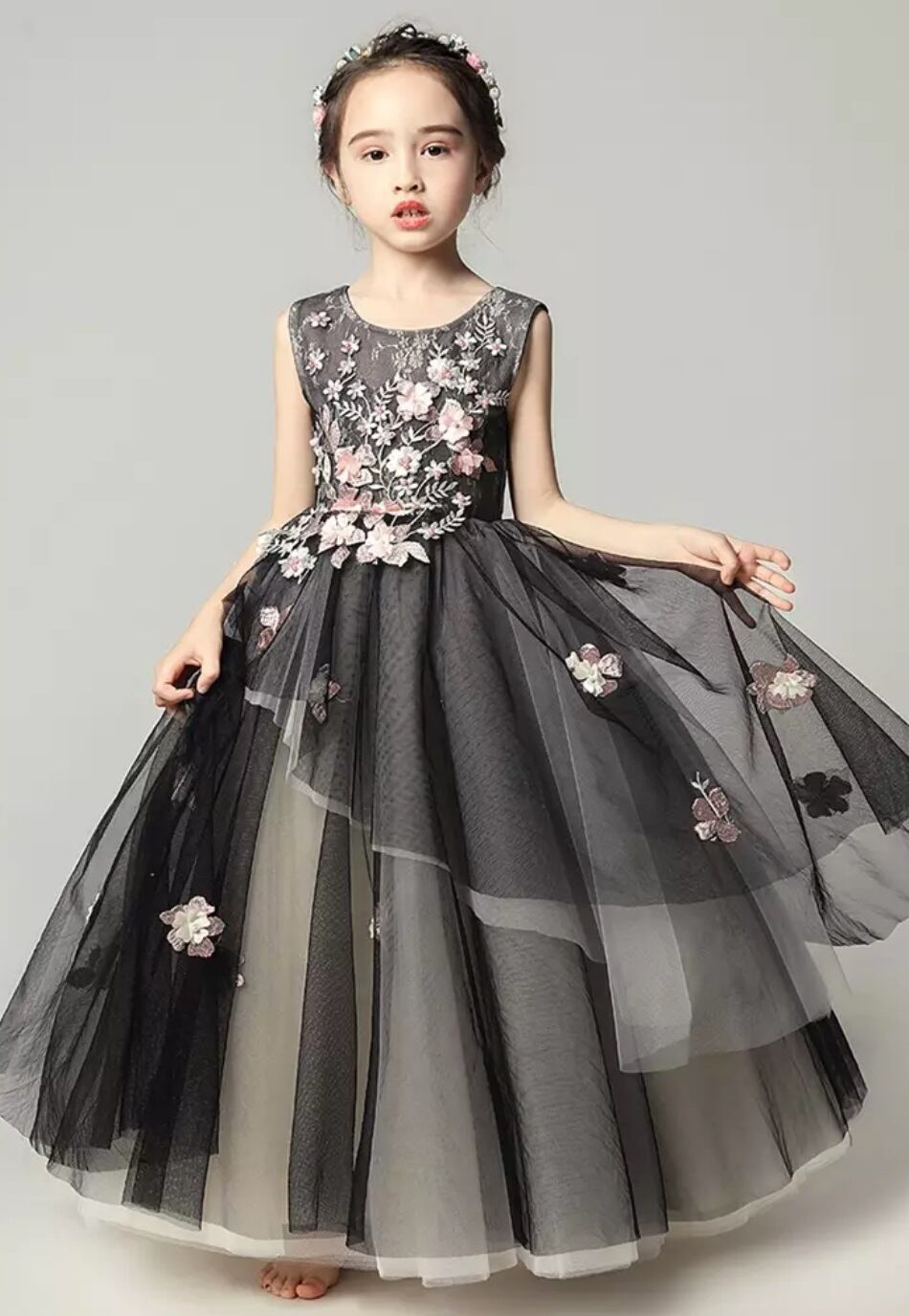 (geyaner_X0047) お花のロングドレス ブラック ピアノ 発表会 ドレス 子供 130 140 150 160 ドレス 子供 結婚式 キッズ ドレス 子供 ピアノ発表会ドレス | 2019新作ドレス★onlythebestオンリーザベスト