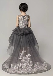 (geyaner_X0055) 花柄ドレス トレーン グレー 膝丈 ピアノ 発表会 ドレス 子供 100-160 ドレス 子供 結婚式 キッズ ドレス 子供 ドレス 結婚式 誕生日会 | 2019新作ドレス★onlythebestオンリーザベスト