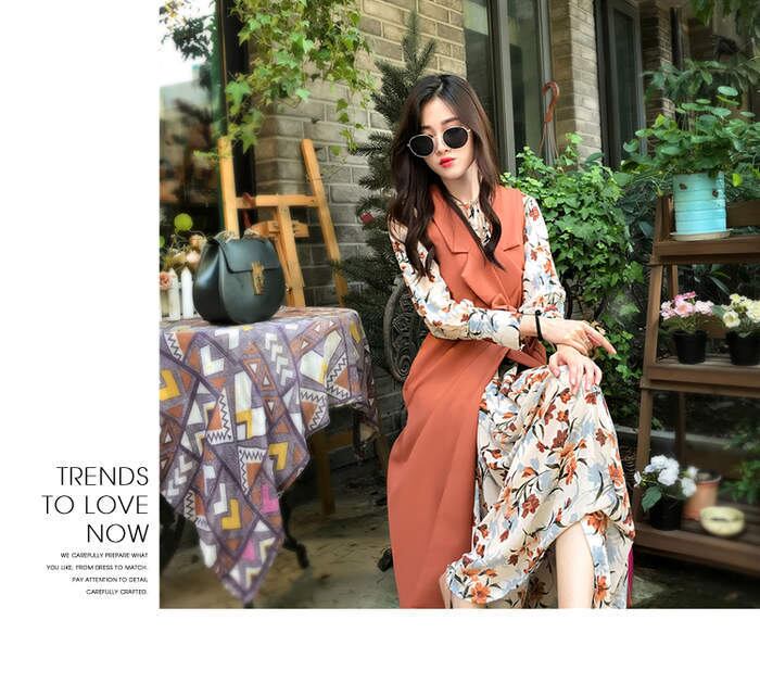 (cest-X0003) ロングスリーブ スーツ 女性の服 レッドベストワンピース ツーピーススーツ 2018年秋トレンド ロングワンピース シャツワンピース | 2019新作ドレス★onlythebestオンリーザベスト