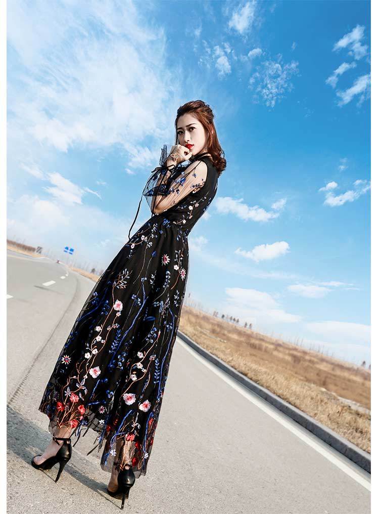 (drsb-V0009) シースルー マキシ ワンピース シフォン 袖ありワンピース結婚式 フォーマル ワンピース 結婚式 お呼ばれ 二次会 花柄 | 2019新作ドレス★onlythebestオンリーザベスト