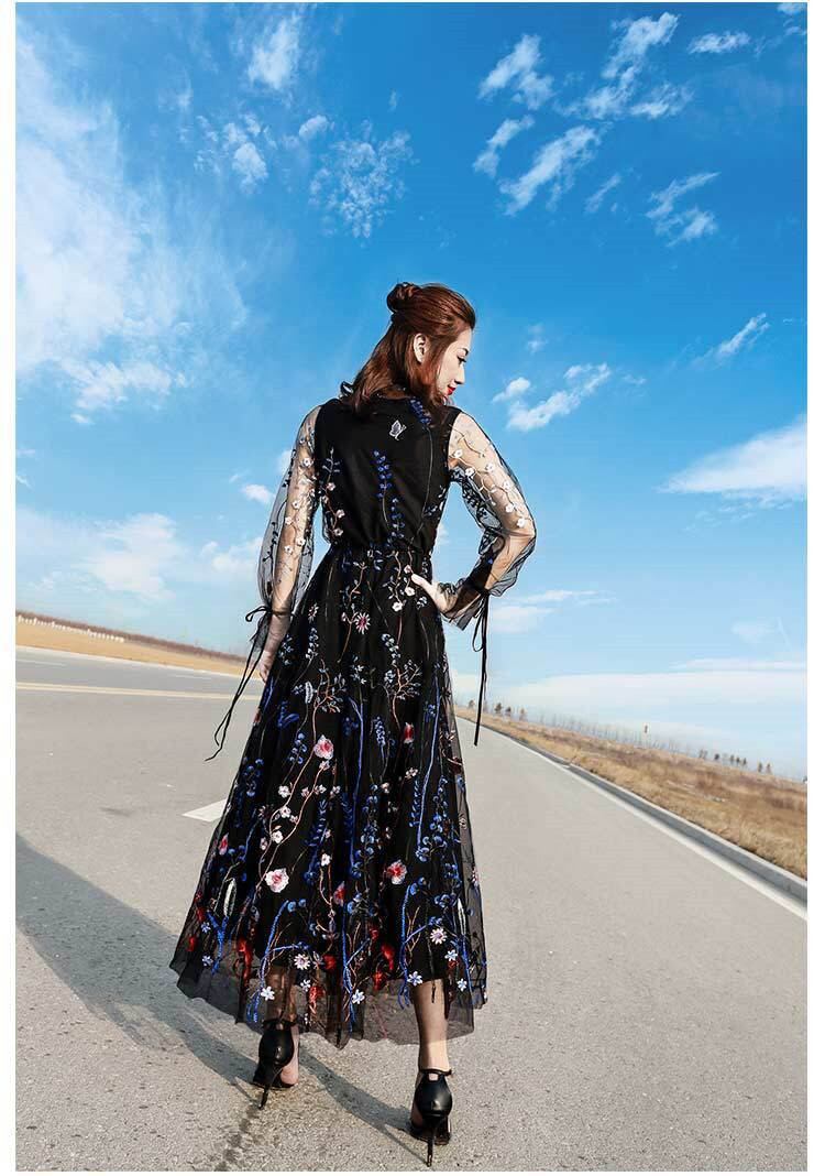 シースルーに色とりどりのフラワー刺繍のワンピース。
