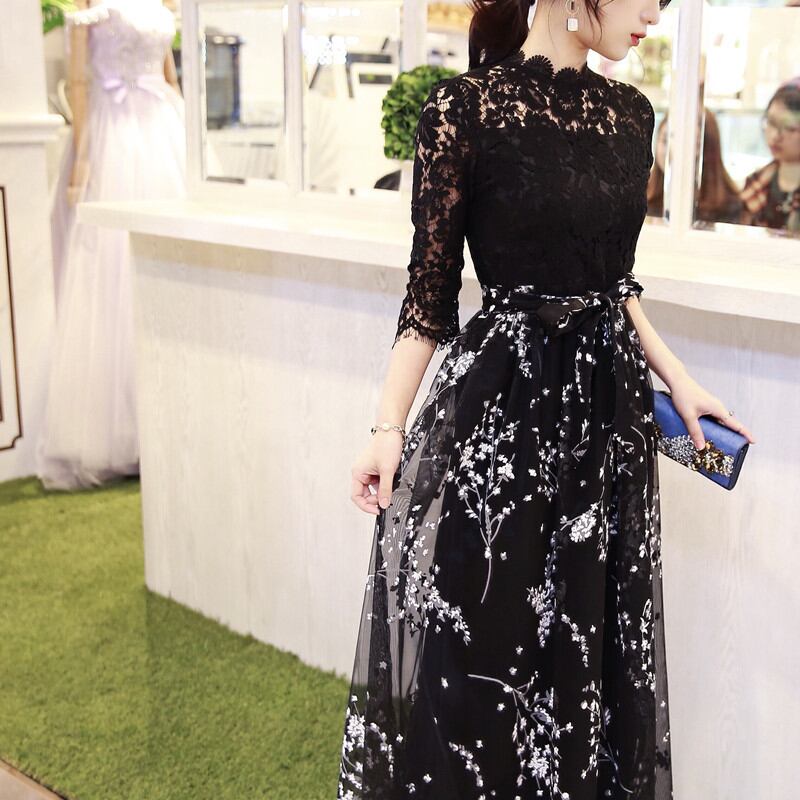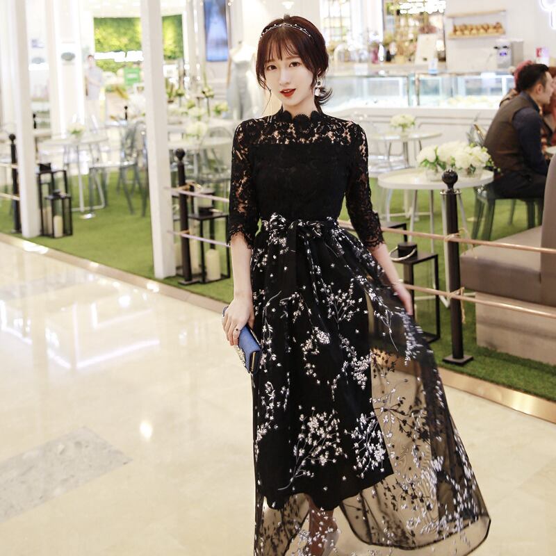 (drsb-V0028) 花柄レース ハイネック メッシュ 刺繍 パーティー ロングドレス 結婚式 お呼ばれドレス パーティードレス 結婚式 二次会 ワンピース | 2019新作ドレス★onlythebestオンリーザベスト