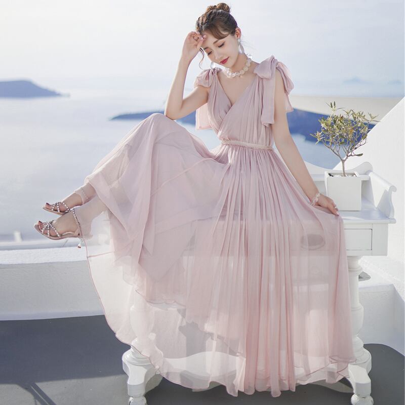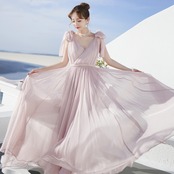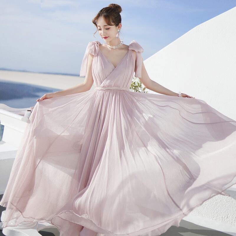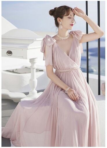 (drsb-V0053) 肩リボン カシュクール風 マキシ ワンピース シフォン 結婚式 ドレス お呼ばれ ワンピース 30代 20代 ブライズメイドドレス | 2019新作ドレス★onlythebestオンリーザベスト