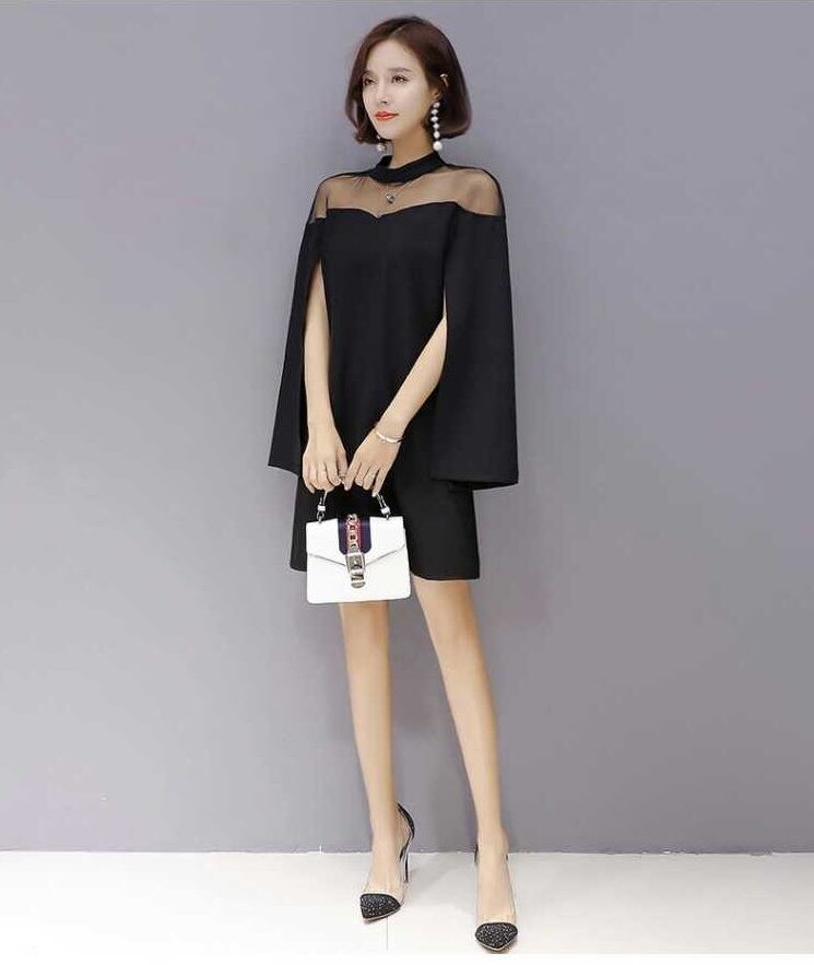 (drsb-V0026) ケープ風 シースルー 袖付き ミニ 膝丈 ドレス 結婚式 ドレス お呼ばれ ワンピース 30代 結婚式ドレス 20代 40代 披露宴パーティドレス | 2019新作ドレス★onlythebestオンリーザベスト