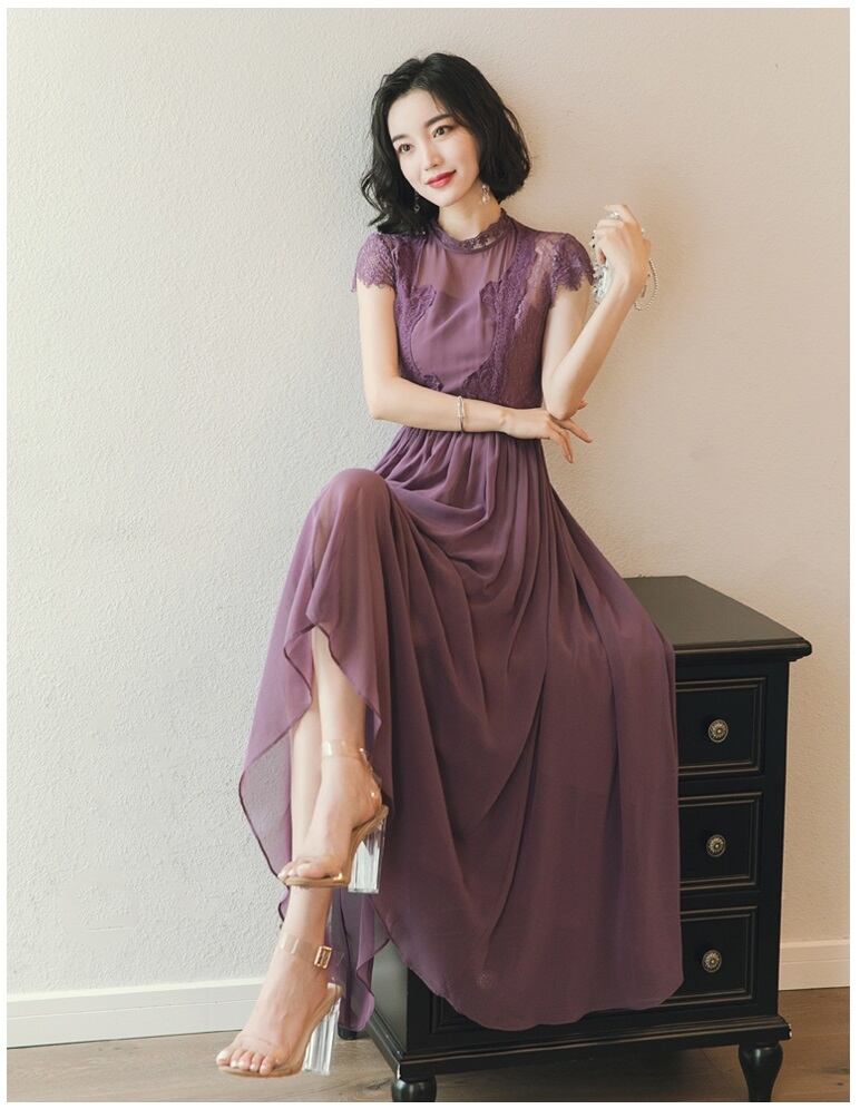 (drsb-V0057) フラワー 刺繍 レース シアー シフォン ロング ワンピース ワンピースドレス 結婚式 ドレス お呼ばれ ワンピース 30代 20代 | 2019新作ドレス★onlythebestオンリーザベスト