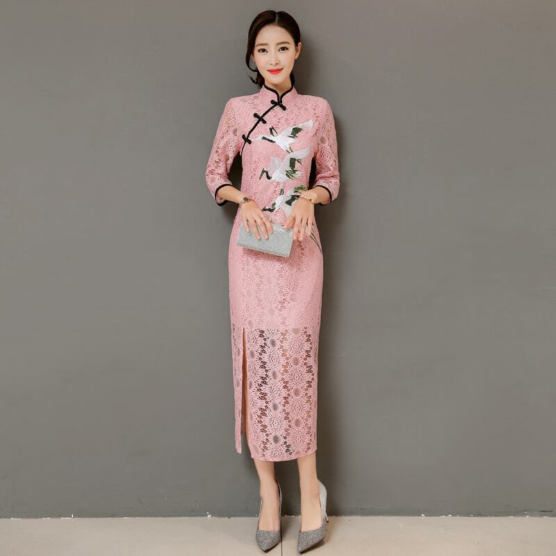 (drsb-V0078) 7分袖 チャイナカラー 鶴刺繍 レース タイト パーティー ドレス ワンピースドレス 結婚式 ドレス お呼ばれ ワンピース 30代 20代 | 2019新作ドレス★onlythebestオンリーザベスト