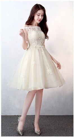白 オフショルダー ミディアム レース フレア チュール ワンピース