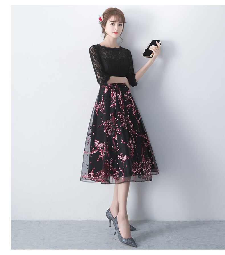 (drsb-V0069) 花柄 刺繍 ワンピース チュールドレス パーティードレス ミモレ丈 袖あり フォーマル ワンピース 結婚式 お呼ばれ 20代 キャバドレス | 2019新作ドレス★onlythebestオンリーザベスト