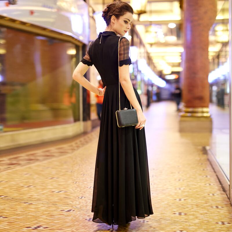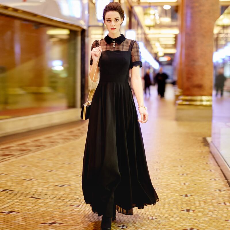 (drsb-V0008) コントラスト異素材チェック黒ドレス マキシ丈 ワンピース 結婚式 お呼ばれ 袖あり 結婚式 お呼ばれドレス 30代 20代 フォーマル | 2019新作ドレス★onlythebestオンリーザベスト