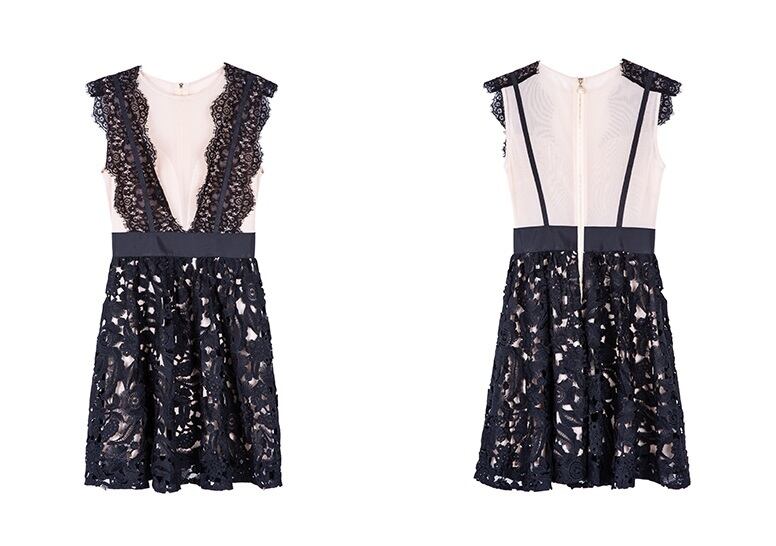 エレガントなブラックレースとメッシュレースを合わせた、ちょっぴりヌーディなデザインがセクシーなワンピース。