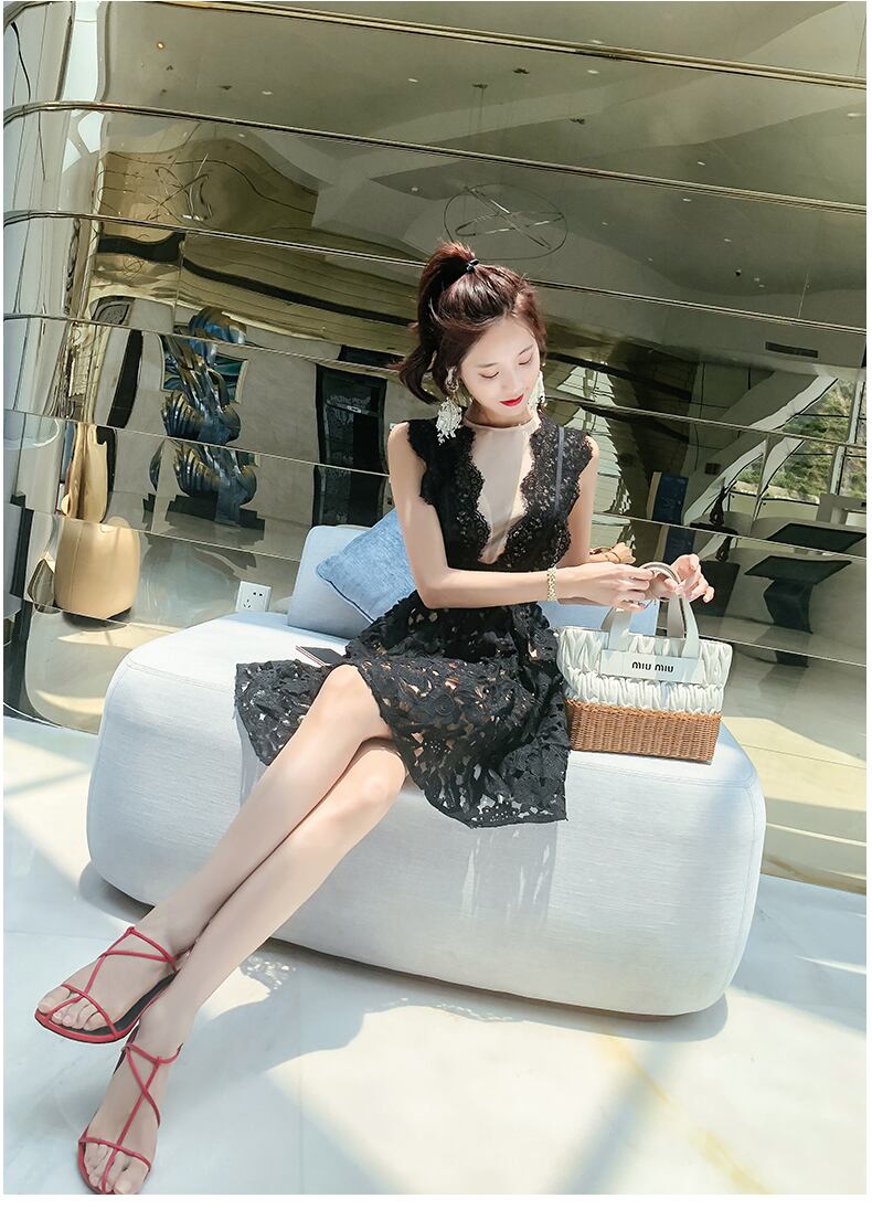(drsb-V0086) エレガント 黒レース ワンピース ノースリーブ ミニ 膝丈 ドレス 結婚式 ドレス お呼ばれ ワンピース 20代 30代 ブライズメイドドレス | 2019新作ドレス★onlythebestオンリーザベスト