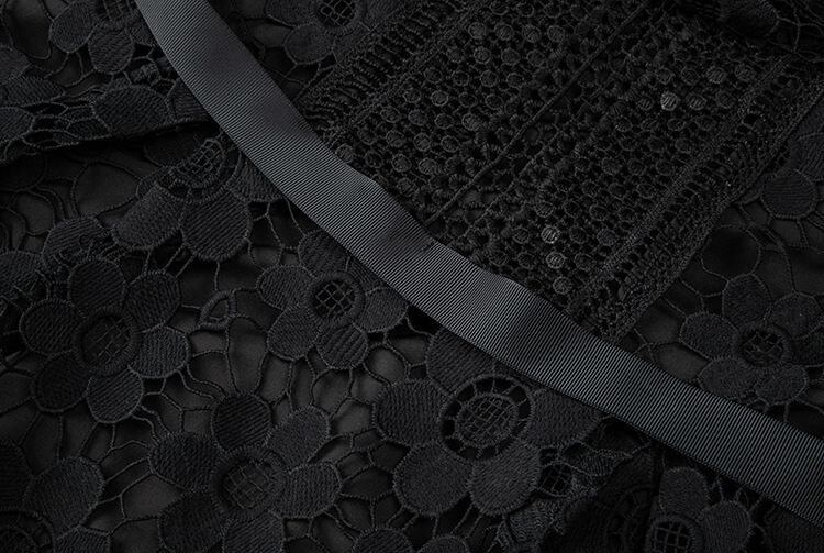 シンプルなフィットアンドフレアシルエットは華やかな印象を与えてくれるコードレースなので存在感とお洒落な女子力が際立つ一枚です。