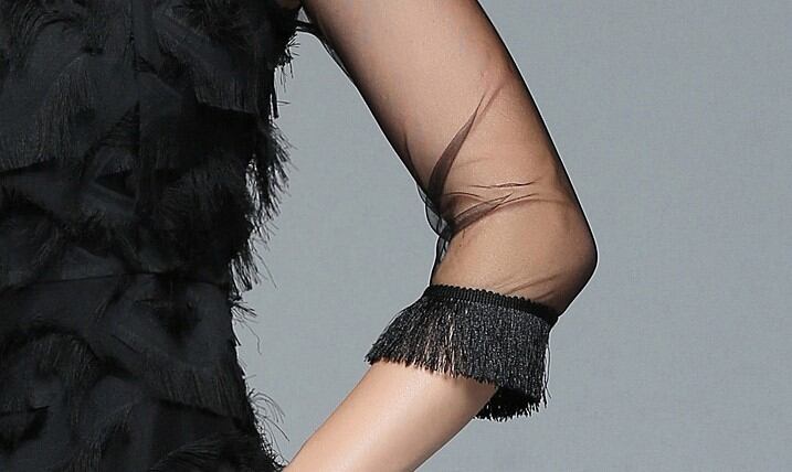 フェザーシフォン素材で袖と肩はシースルータイプ