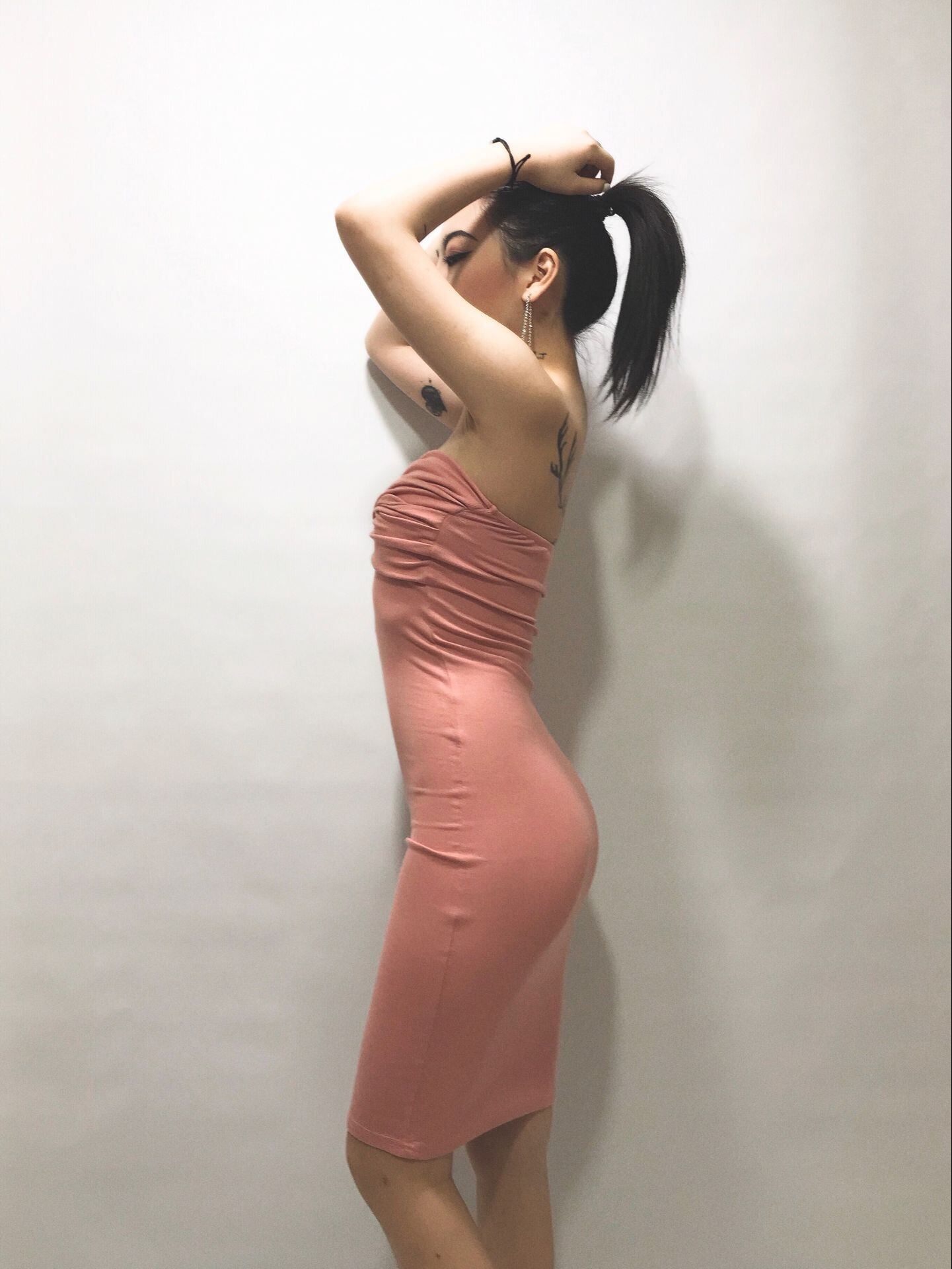 ベアトップ フィット ストレッチ素材 セクシー エレガント スタイリッシュ マタニティ スリム ドレス S M