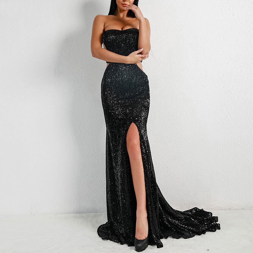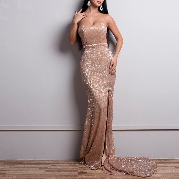 スパンコール ロングドレス チューブトップ スリット ワンピース ニット フィット エレガント スタイリッシュ マタニティ XS S M L