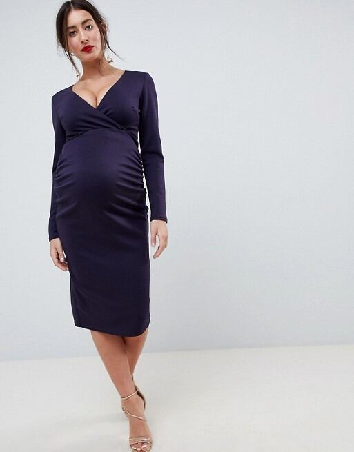 ラップフロントのマタニティドレス
