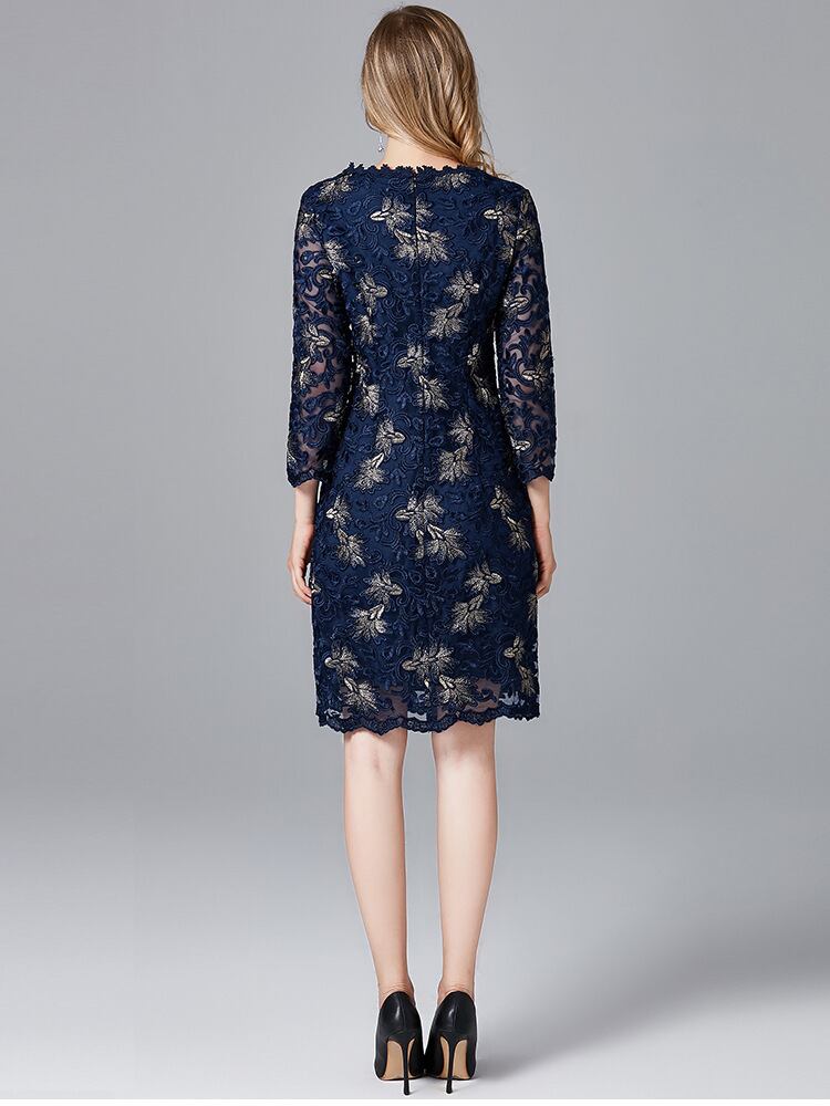 (yizhuai-x0014) レース 刺繍 九分丈袖 膝丈 ワンピース ドレス 結婚式 二次会 披露宴 お呼ばれ 親族 フォーマル 入園式 食事会 大きいサイズ | 2019新作ドレス★onlythebestオンリーザベスト