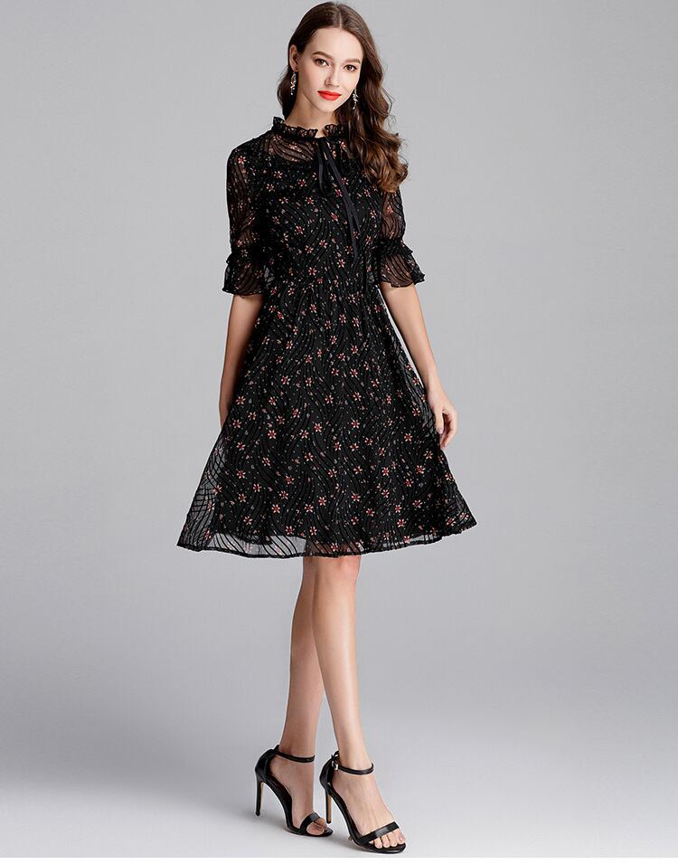 (yizhuai-x0025) シフォン 花柄 五分丈 袖あり 膝丈 シフォンワンピース ワンピース 二次会 女子会 通勤 オフィス 食事会 卒業式 大きいサイズ | 2019新作ドレス★onlythebestオンリーザベスト