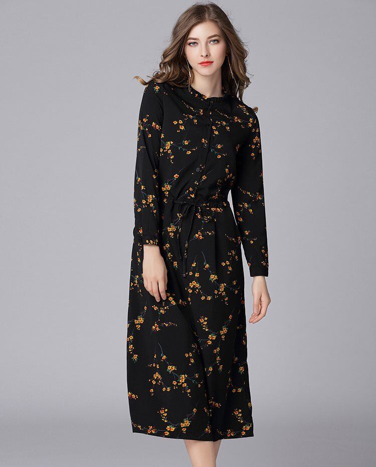 (yizhuai-x0026) 花柄 ワンピース シフォン ワンピ ロングワンピース オフィスカジュアル 通勤ワンピース 二次会 女子会 大きいサイズ 黒 | 2019新作ドレス★onlythebestオンリーザベスト