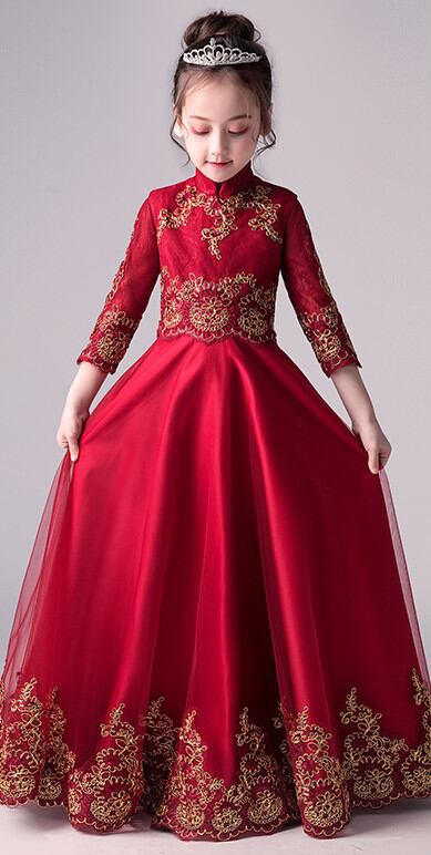 (drschr-X0014) キッズ 礼服 ドレス ピアノ発表会 衣装 長袖 ロングスカート ピアノ 発表会 結婚式ドレス リングガール 子供のドレス | 2019新作ドレス★onlythebestオンリーザベスト