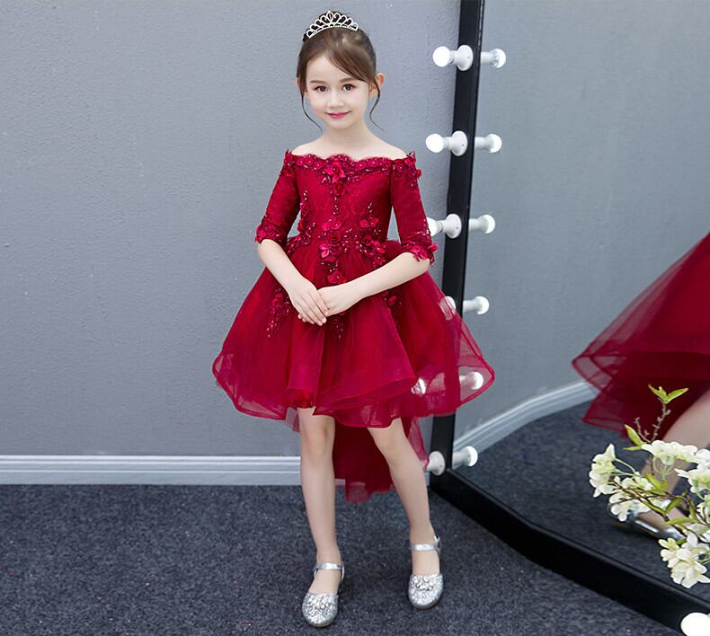 (drschr-X0023) ワインレッド キッズ ドレス 女の子 一字肩 礼服 ピアノ 発表会 ドレス 子供 結婚式ドレス リングガール 子供のドレス | 2019新作ドレス★onlythebestオンリーザベスト