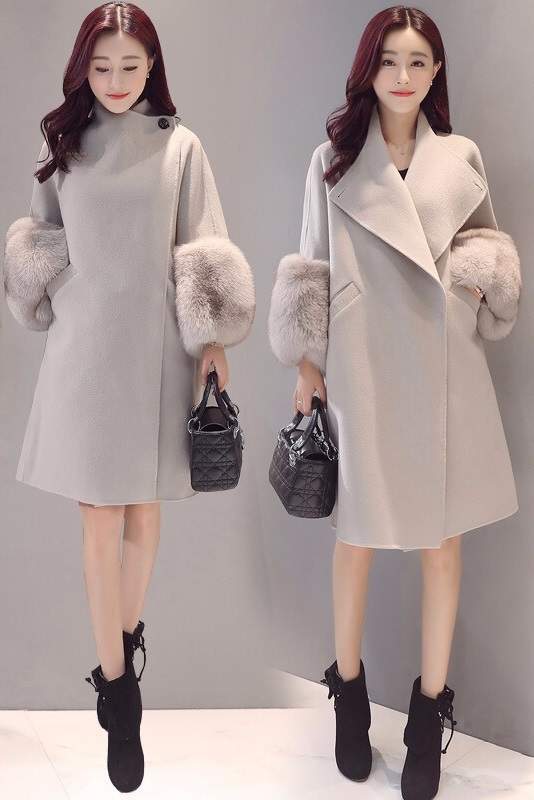 トレンド ロング丈 フェイクファー ボリュームスリーブ スリム スタイリッシュ 秋冬 上品 エレガント S M L XL 2XL