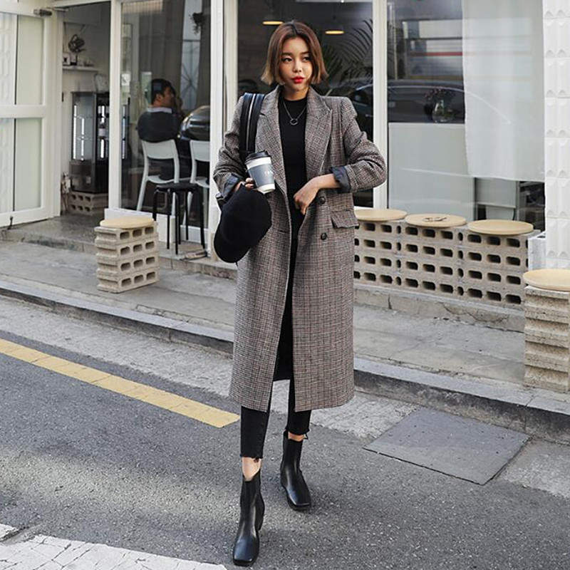 (fwcotb-V0032) チェック柄のロングストレートコート トレンド ストレート ロングコート スリム スタイリッシュ 秋冬 上品 エレガント | 2019新作ドレス★onlythebestオンリーザベスト